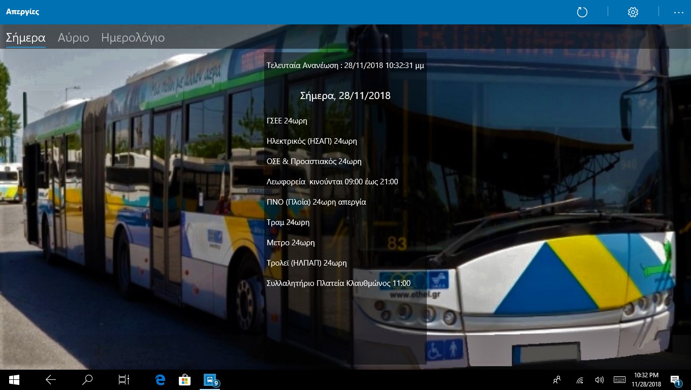 Δεν αποκλείεται το ίδιο να πράξουν και τα υπόλοιπα εννέα ναυτεργατικά σωματεία, ενώ ανακοινώσεις αναμένονται εντός της ημέρας.η απεργία θα ξεκινήσει από τις 00:01 έως τις 24:00 της ίδιας ημέρας.κατά τη διάρκεια της απεργίας θα. Με απεργίες και στάσεις εργασίας θα συμμετέχουν οι εργαζόμενοι στις συγκοινωνίες της αθήνας στην 'πανεθνική ημέρα δράσης' και την 24ωρη απεργία της γσεε την τετάρτη 30 και πέμπτη 31 μαΐου 2018. Σήμερα, δεν υπάρχουν καταχωρημενες απεργίες Αναστέλλονται οι 48ωρες απεργιακές κινητοποιήσεις. Σε πλήρη εξέλιξη βρίσκονται οι απεργιακές κινητοποιήσεις στο κέντρο της αθήνας με αποτέλεσμα να παρατηρείται ιδιαίτερα αυξημένη κίνηση σε πολλούς δρόμους.