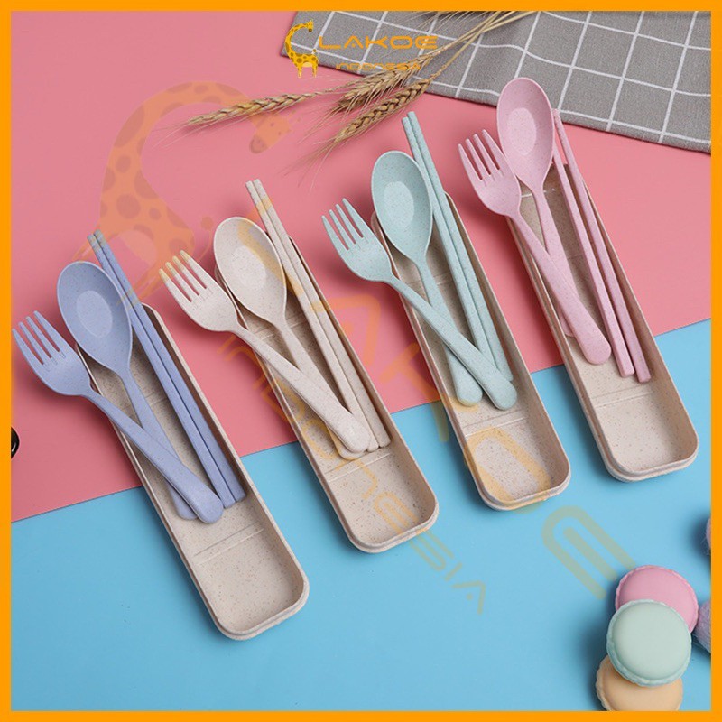 Set sendok garpu sumpit / paket sendok travel bahan jerami plastik.